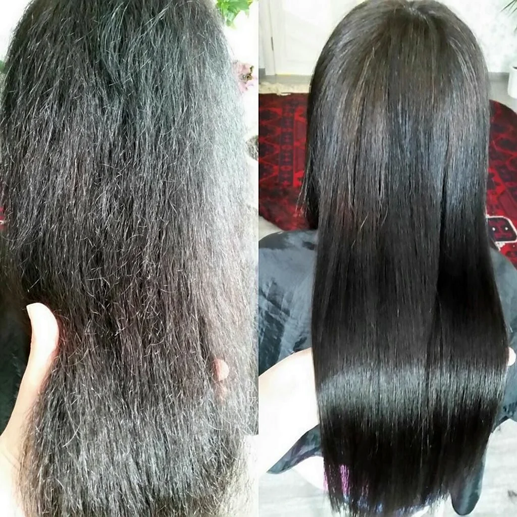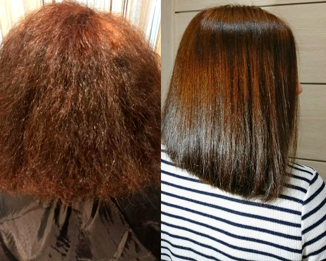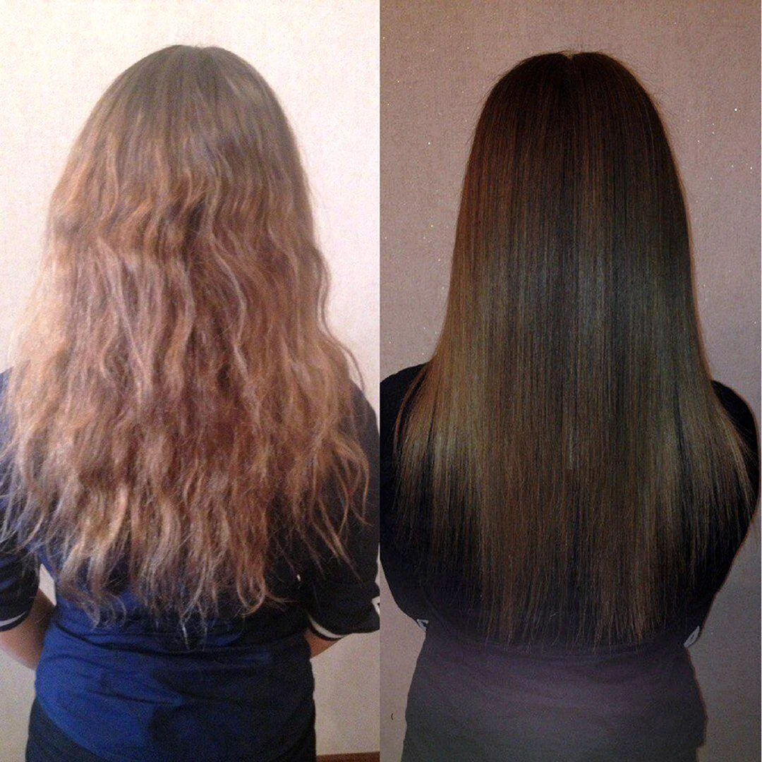 Выпрямление волос до и после
