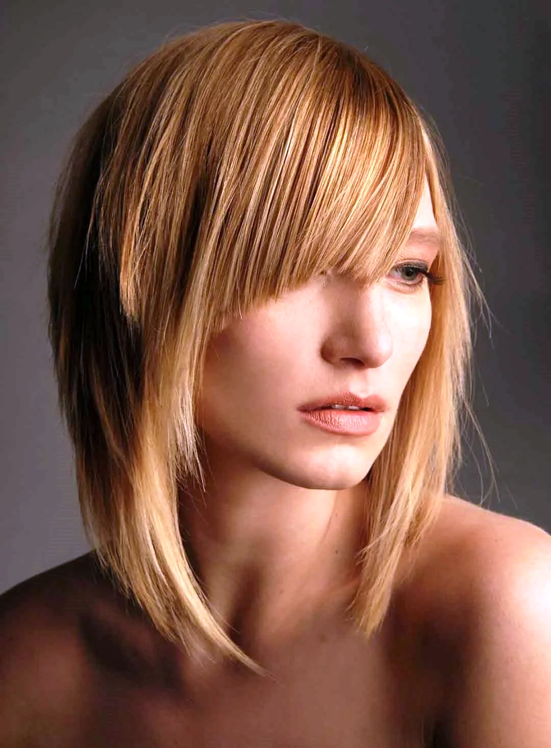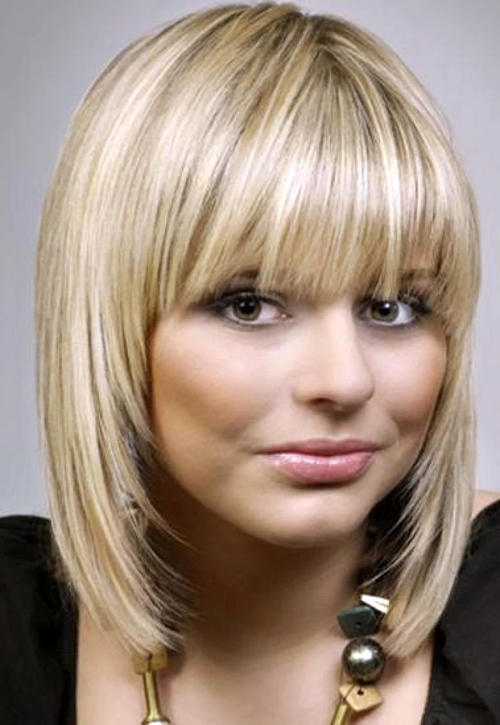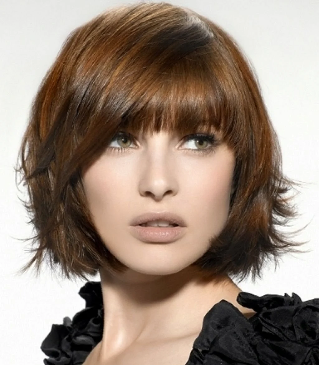 Боб-каре лесенкой с челкой на средние волосы